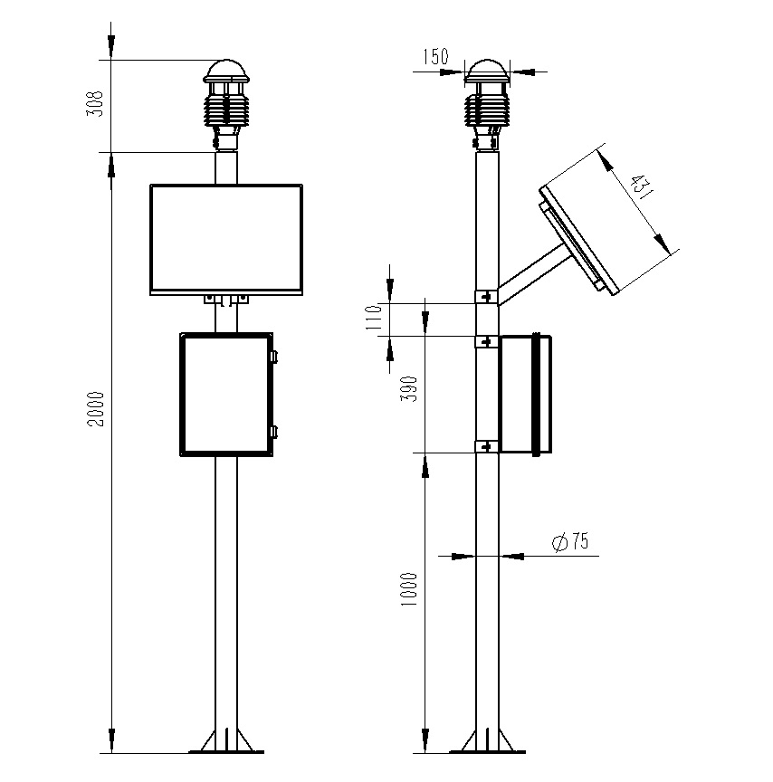 5.兩米碳鋼支架,頂部無(wú)需法蘭盤可直接套接傳感器