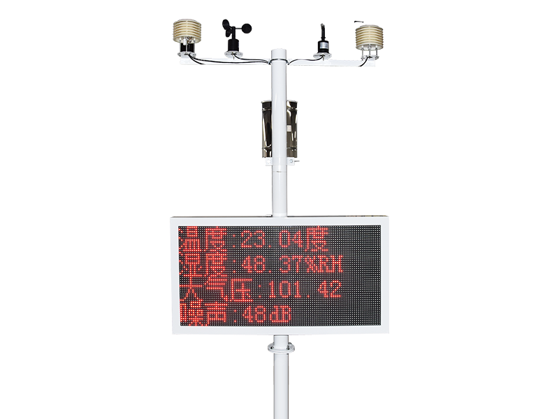 4.硬件組成:傳感器、立桿支架、設(shè)備箱、LED屏幕、采集器、云平臺、玻璃鋼百葉箱(內(nèi)含干濕球溫度計)